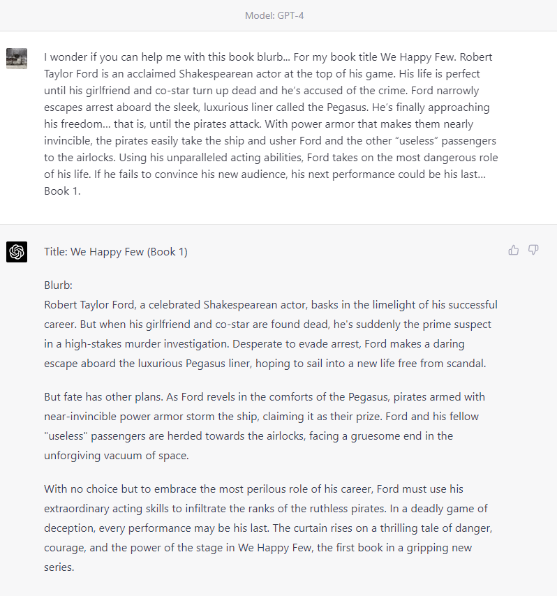This is not the Leviathan Universe that my first book took place in. I’ll post more about this later. And I have a lot to talk about with ChatGPT and much more!